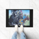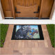 This unique door mat has one of my favourite paintings on it, the jousting knights on horseback painting is titled "The Four Knights of The Forest Festival." I painted it from a photograph that I took when I was at the Forest Festival on Chingford Plains in the UK. The forest festival is held every year and it celebrates everything to do with historic Epping Forest. On two of the years that we attended we were lucky enough to see the re-enactment of a traditional joust between four knights on horseback, each knight is representing his "kingdom." I captured the photograph as the knights were parading around the jousting arena and I couldn’t wait to paint it. The Black Knight went on to achieve a glorious victory over the other three knights. This original realist mediaeval art picture looks great on this mat, I'm sure this historic art image will make an unusual and unique gift for someone or perhaps you just want to treat yourself to this one of a kind original jousting knights door mat.