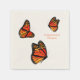 These pretty Monarch butterfly paper party napkins feature three delicate Monarch butterflies flitting on a gentle breeze, each resplendent in its vibrant dark to light orange markings - customise with your message - by katz_d_zynes