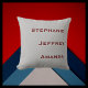 This simple, minimalist square throw pillow, with room for three names, is a wonderful gift for a new home or housewarming party - or for yourself, of course! Great gift for new parents or grandparents. It is grey and burgundy, but easy to change colours. Back is solid grey. All Rights Reserved © 2024 Alan & Marcia Socolik