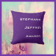 This simple, minimalist square throw pillow, with room for three names, is a wonderful gift for a new home or housewarming party - or for yourself, of course! Great gift for new parents or grandparents. It is royal purple and white, but easy to change colours. Back is solid aubergine purple. All Rights Reserved © 2024 Alan & Marcia Socolik