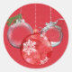 Three Ornaments on a Red Background Small Classic Round Sticker