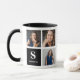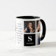 A monogram mug with photos. This personalised mug, with three photo templates, lets you choose several photos, add your name & monogram, and a message of your choice. This mug has a black and white design. Simply add your words and photos, add this mug to your cart, then enjoy your personalised mug.