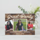 This graduation party invitation beautifully blends rustic charm with personal touches, creating a memorable keepsake for your special celebration. On the front, a rustic wood planked background sets a warm, inviting tone, as three of your favourite photos are artfully arranged in a collage. At the top, the words "Grad Party" are elegantly scripted in a playful brush font, capturing the festive spirit of the occasion. Below, the invitation honours the graduate by name, accompanied by the date of the event, all in a harmonious layout that feels both personal and celebratory. The back of the invitation continues the rustic theme, offering a dedicated spot for another cherished photo and room to include all the essential event details, ensuring your guests have everything they need to join in the celebration. Stand out in the crowd with this rustic grad party invitation that is a heartfelt tribute that celebrates the joy of sharing this milestone with loved ones.
