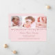 An adorable pink birth announcement with a delicate garland and a white scalloped edging. It has three photo windows for your favourite photos.
