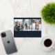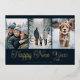 A joyful New Year photo card featuring a clean, modern three-photo layout that beautifully highlights your favorite winter moments. The deep navy panel below adds a touch of elegance, paired with a graceful script “Happy New Year” greeting that feels festive and warm. Personalized family details complete the design with a polished finish. Perfect for sharing heartfelt wishes and celebrating the year ahead with style and charm.