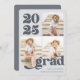 This trendy blue three photo graduation party invitation features a fun retro font, and one curved photo within a three photo grid.