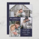 These rustic wedding invitations feature a dark navy blue wood look background with elegant white typography. Add three of your favourite personal photos for a simple yet stylish look.