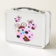 Three pink and black ladybug with stars metal lunch box