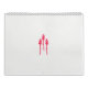 The design shows three objects that resemble red and pink flamingo lawn ornaments against a black background. Each object has a long, thin pink leg leading up to a larger red and pink body with a pointed top, giving the appearance of a flamingo head and neck. The texture of the bodies suggests a reflective or shiny material.