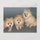 These adorable pomeranian dogs are cute as can be on this postcard.
