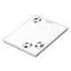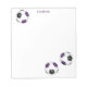 This fun soccer themed notepad features 3 tiny, randomly arranged soccer balls that have purple, black & white panels - font style is for a girl but can be customised for a boy - personalise with the athlete's / fan's / coach's name - by katz_d_zynes