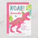 Girl, Dinosaur, Three-rex, Roar, Third Birthday Invitation