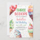 Three Scoops Girls Ice Cream 3rd Birthday Invitation