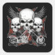 Three Skull with Red Chopper Motorcycle Square Sticker