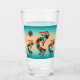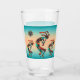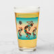 This is a Unique "One of a Kind" Southwest Kokopelli Beer Glass! It Features Three Southwest Kokopelli in Turquoise, Orange and Black, Playing the Flute and Dancing Under the Sun on a Turquoise and Orange Sunset Background!