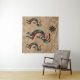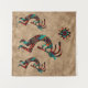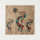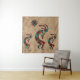This is a Unique "One of a Kind" Southwest Kokopelli Wall tapestry!  It Features Three Southwest Kokopelli in Turquoise, Orange and Black... Dancing and Playing the Flute and Dancing Under the Sun on a Tan Leather Background!
