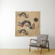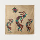 This is a Unique "One of a Kind" Southwest Kokopelli Wall tapestry!  It Features Three Southwest Kokopelli in Turquoise, Orange and Black... Dancing and Playing the Flute and Dancing Under the Sun on a Tan Leather Background!