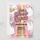 A groovy Halloween Three Spirit third birthday party invitation! Featuring cute hippie ghost illustrations and retro typography.