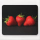 Three Strawberries On Black - Three red strawberries in a horizontal row photographed against a simple black background.