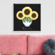 Three sunflowers with heart leaves in a vase on black Canvas Print. A Gift made with love and kindness is ideal for everyone!