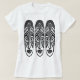 A T-shirt with a hand drawn original vector drawing of three surprised looking Tiki masks.