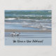 A watercolor of three common terns on a beach, with sand and waves in the background, announce that you have a new address on this Postcard. The back is left blank for you to customise with your details.