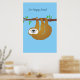 Three-Toed Sloth "Just Hanging Around" Blue Poster.