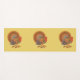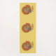 This yoga mat is a bright golden yellow with a row of three male turkeys with fanned out tails standing in leaves with feathers in Autumn colours of browns, blues, and oranges.