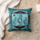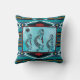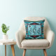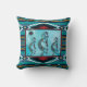 This is a Unique "One of a Kind" Tourquoise Kokopelli Throw Pillow! It Features Three Turquoise Southwest Kokopelli Dancing and Playing the Flute Under the Sun on a Turquoise Swirl Background with Rust and Black Borders....Surround by a Turquoise, White and Rust Border!