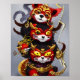 three warrior red panda button poster