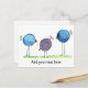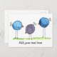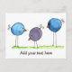 Fun watercolor painting of three whimsical birds in blue and purple with long skinny legs standing on green grass. A template below the image to add your own text to personalise.