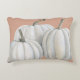 Three white pumpkins on a light brown background. Cute fall decoration.
