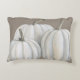 Three white pumpkins on a grey brown background. Cute fall decoration.
