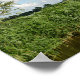 Poster print of three windmills along a canal with boats and reeds under a blue sky with puffy clouds creating a peaceful scene in the dutch countryside of Leidschendam, the Netherlands.
