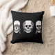 Three wise skulls, see, hear, speak no evil, funny Halloween pillow, black pillow for Halloween party, home decoration