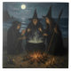 Three Witches Brew Cauldron Full Moon Beach Tile
