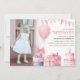 These invitations feature the birthday child's favourite photo, with details such as watercolor birthday balloons, bunting, birthday cake, and gifts in soft shades of pink. All of these elements come together to create a stunning visual piece that your guests will be sure to think of for years to come.