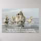 Inspirational quote poster depicts beautiful white horses galloping through water and features Bible Verse Psalm 108:13, "Through God we shall do valiantly, for He shall tread down our enemies."