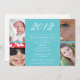 Turquoise graduation invitation with party information surrounded by four photo slots.