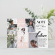 Modern, minimal graduation announcement to celebrate the grad and look back at their journey. Design features a trendy modern design with a five photo layout to display various photos of the graduate through the years to create a fun now and then design. Bold trendy text displaying the words "Then" "Now" & "Future" are displayed around the design. Customise with the Grad's name, school, and a section to display the grad's future plans. Design by Moodthology Papery