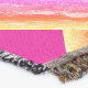 A quality printed throw has its advantages. This is a much finer weave throw than its loopier cousins, and though lighter, it is worth the investment for custom room accessorizing. The back is much prettier than the typical brown, and the fringe on the long sides very vivid, the selvage nicely done. Before photographing, I washed the throw in cold water, delicate, with a thicker woven throw the same size. On tumble dry low, this throw was dry in half the time as the other. This is a very practical quality if you use throws for furniture covers or to wrap up in frequently. The sleekness of the fabric makes it a great layer for accenting or protecting without the feeling of sitting on too much stuff. Perfect for napping or when you feel a light chill coming on. The color printing is beautiful and on this fabric, matched the design and color of my Photoshop image. This is an advantage for blending room fabrics and colors. The fringe on the short sides prints the colors from the design image and therefore varies from the side fringe. I streaked a white fractal line through the plaid pattern to give the illusion of weaving. This printed as crisp as an illusory thread, and put some white in the short side fringe, showing another advantage of print vs loomed- for artistic purposes, line lines, detail, and color integrity can be planned and preserved. My loomed throws have color limitations and more of a needlepoint texture. Print throws reproduce an exact image. The throw felt a little stiff straight out of the package, but this went away in the first delicate wash. Of course I searched the wash water for ink or bleeding and there was none.