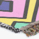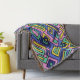 A quality printed throw has its advantages. This is a much finer weave throw than its loopier cousins, and though lighter, it is worth the investment for custom room accessorizing. The back is much prettier than the typical brown, and the fringe on the long sides very vivid, the selvage nicely done. Before photographing, I washed the throw in cold water, delicate, with a thicker woven throw the same size. On tumble dry low, this throw was dry in half the time as the other. This is a very practical quality if you use throws for furniture covers or to wrap up in frequently. The sleekness of the fabric makes it a great layer for accenting or protecting without the feeling of sitting on too much stuff. Perfect for napping or when you feel a light chill coming on. The color printing is beautiful and on this fabric, matched the design and color of my Photoshop image. This is an advantage for blending room fabrics and colors. The fringe on the short sides prints the colors from the design image and therefore varies from the side fringe. I streaked a white fractal line through the plaid pattern to give the illusion of weaving. This printed as crisp as an illusory thread, and put some white in the short side fringe, showing another advantage of print vs loomed- for artistic purposes, line lines, detail, and color integrity can be planned and preserved. My loomed throws have color limitations and more of a needlepoint texture. Print throws reproduce an exact image. The throw felt a little stiff straight out of the package, but this went away in the first delicate wash. Of course I searched the wash water for ink or bleeding and there was none.
