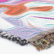 A quality printed throw has its advantages. This is a much finer weave throw than its loopier cousins, and though lighter, it is worth the investment for custom room accessorizing. The back is much prettier than the typical brown, and the fringe on the long sides very vivid, the selvage nicely done. Before photographing, I washed the throw in cold water, delicate, with a thicker woven throw the same size. On tumble dry low, this throw was dry in half the time as the other. This is a very practical quality if you use throws for furniture covers or to wrap up in frequently. The sleekness of the fabric makes it a great layer for accenting or protecting without the feeling of sitting on too much stuff. Perfect for napping or when you feel a light chill coming on. The color printing is beautiful and on this fabric, matched the design and color of my Photoshop image. This is an advantage for blending room fabrics and colors. The fringe on the short sides prints the colors from the design image and therefore varies from the side fringe. I streaked a white fractal line through the plaid pattern to give the illusion of weaving. This printed as crisp as an illusory thread, and put some white in the short side fringe, showing another advantage of print vs loomed- for artistic purposes, line lines, detail, and color integrity can be planned and preserved. My loomed throws have color limitations and more of a needlepoint texture. Print throws reproduce an exact image. The throw felt a little stiff straight out of the package, but this went away in the first delicate wash. Of course I searched the wash water for ink or bleeding and there was none.