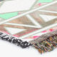 A quality printed throw has its advantages. This is a much finer weave throw than its loopier cousins, and though lighter, it is worth the investment for custom room accessorizing. The back is much prettier than the typical brown, and the fringe on the long sides very vivid, the selvage nicely done. Before photographing, I washed the throw in cold water, delicate, with a thicker woven throw the same size. On tumble dry low, this throw was dry in half the time as the other. This is a very practical quality if you use throws for furniture covers or to wrap up in frequently. The sleekness of the fabric makes it a great layer for accenting or protecting without the feeling of sitting on too much stuff. Perfect for napping or when you feel a light chill coming on. The color printing is beautiful and on this fabric, matched the design and color of my Photoshop image. This is an advantage for blending room fabrics and colors. The fringe on the short sides prints the colors from the design image and therefore varies from the side fringe. I streaked a white fractal line through the plaid pattern to give the illusion of weaving. This printed as crisp as an illusory thread, and put some white in the short side fringe, showing another advantage of print vs loomed- for artistic purposes, line lines, detail, and color integrity can be planned and preserved. My loomed throws have color limitations and more of a needlepoint texture. Print throws reproduce an exact image. The throw felt a little stiff straight out of the package, but this went away in the first delicate wash. Of course I searched the wash water for ink or bleeding and there was none.