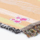 A quality printed throw has its advantages. This is a much finer weave throw than its loopier cousins, and though lighter, it is worth the investment for custom room accessorizing. The back is much prettier than the typical brown, and the fringe on the long sides very vivid, the selvage nicely done. Before photographing, I washed the throw in cold water, delicate, with a thicker woven throw the same size. On tumble dry low, this throw was dry in half the time as the other. This is a very practical quality if you use throws for furniture covers or to wrap up in frequently. The sleekness of the fabric makes it a great layer for accenting or protecting without the feeling of sitting on too much stuff. Perfect for napping or when you feel a light chill coming on. The color printing is beautiful and on this fabric, matched the design and color of my Photoshop image. This is an advantage for blending room fabrics and colors. The fringe on the short sides prints the colors from the design image and therefore varies from the side fringe. I streaked a white fractal line through the plaid pattern to give the illusion of weaving. This printed as crisp as an illusory thread, and put some white in the short side fringe, showing another advantage of print vs loomed- for artistic purposes, line lines, detail, and color integrity can be planned and preserved. My loomed throws have color limitations and more of a needlepoint texture. Print throws reproduce an exact image. The throw felt a little stiff straight out of the package, but this went away in the first delicate wash. Of course I searched the wash water for ink or bleeding and there was none.