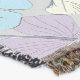 A quality printed throw has its advantages. This is a much finer weave throw than its loopier cousins, and though lighter, it is worth the investment for custom room accessorizing. The back is much prettier than the typical brown, and the fringe on the long sides very vivid, the selvage nicely done. Before photographing, I washed the throw in cold water, delicate, with a thicker woven throw the same size. On tumble dry low, this throw was dry in half the time as the other. This is a very practical quality if you use throws for furniture covers or to wrap up in frequently. The sleekness of the fabric makes it a great layer for accenting or protecting without the feeling of sitting on too much stuff. Perfect for napping or when you feel a light chill coming on. The color printing is beautiful and on this fabric, matched the design and color of my Photoshop image. This is an advantage for blending room fabrics and colors. The fringe on the short sides prints the colors from the design image and therefore varies from the side fringe. I streaked a white fractal line through the plaid pattern to give the illusion of weaving. This printed as crisp as an illusory thread, and put some white in the short side fringe, showing another advantage of print vs loomed- for artistic purposes, line lines, detail, and color integrity can be planned and preserved. My loomed throws have color limitations and more of a needlepoint texture. Print throws reproduce an exact image. The throw felt a little stiff straight out of the package, but this went away in the first delicate wash. Of course I searched the wash water for ink or bleeding and there was none.