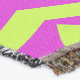 A quality printed throw has its advantages. This is a much finer weave throw than its loopier cousins, and though lighter, it is worth the investment for custom room accessorizing. The back is much prettier than the typical brown, and the fringe on the long sides very vivid, the selvage nicely done. Before photographing, I washed the throw in cold water, delicate, with a thicker woven throw the same size. On tumble dry low, this throw was dry in half the time as the other. This is a very practical quality if you use throws for furniture covers or to wrap up in frequently. The sleekness of the fabric makes it a great layer for accenting or protecting without the feeling of sitting on too much stuff. Perfect for napping or when you feel a light chill coming on. The color printing is beautiful and on this fabric, matched the design and color of my Photoshop image. This is an advantage for blending room fabrics and colors. The fringe on the short sides prints the colors from the design image and therefore varies from the side fringe. I streaked a white fractal line through the plaid pattern to give the illusion of weaving. This printed as crisp as an illusory thread, and put some white in the short side fringe, showing another advantage of print vs loomed- for artistic purposes, line lines, detail, and color integrity can be planned and preserved. My loomed throws have color limitations and more of a needlepoint texture. Print throws reproduce an exact image. The throw felt a little stiff straight out of the package, but this went away in the first delicate wash. Of course I searched the wash water for ink or bleeding and there was none.