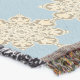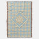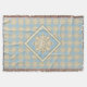 This intricate Throw Blanket has lacey cream medallions. Shades of cream on a sky-blue background. The design is reminiscent of a Persian rug. The Medallions images come from an actual handmade tile by Oregon tile maker Fay Jones Day.