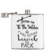 Well made flask, a little better than I had expected. Flask came in clear plastic box which gave it a nice presentation when I took it out of the zazzle packaging. Image is not printed on flask but on sticker. Don't know how this will hold up I haven't used it yet. This would make a Great gift! I plan to purchase more for friends! Cheers. I thought a little brighter than computer. Very crisp, writing wasn't
