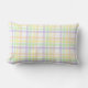 This indoor throw pillow is shown in a lovely plaid print design.